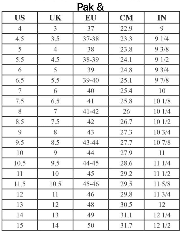 Available Sizes: 36, 37, 38, 39, 40, 41, 42